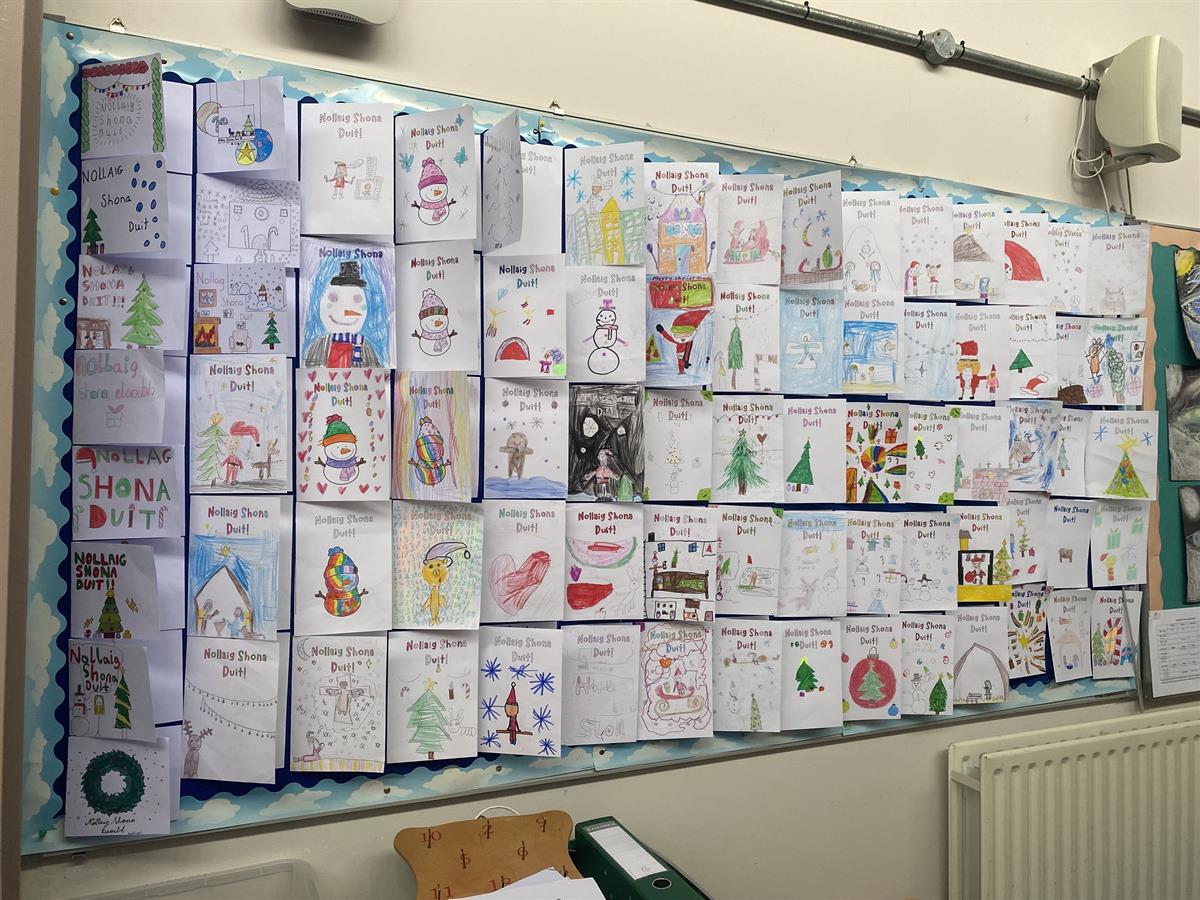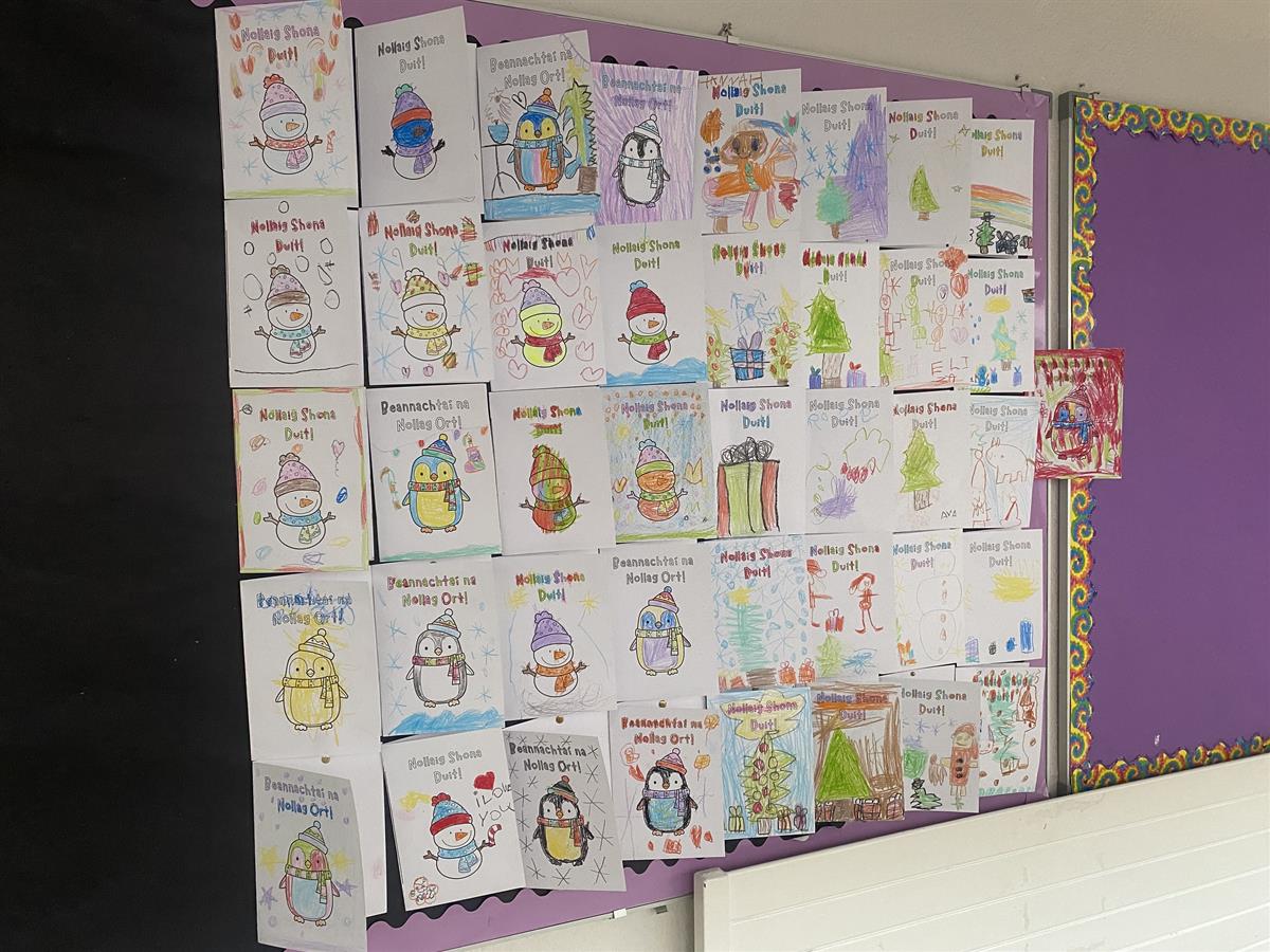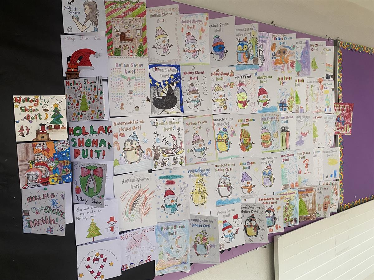 Our first Cárta Nollag Competition was a wonderful whole-school initiative that truly showcased the creativity and enthusiasm of our students. The aim of the competition was to use as much Gaeilge as possible while designing a beautifully decorated Christmas card to be displayed around the school and the standard of entries was exceptional. We were incredibly proud of every student who took part. One winner was selected from each class: